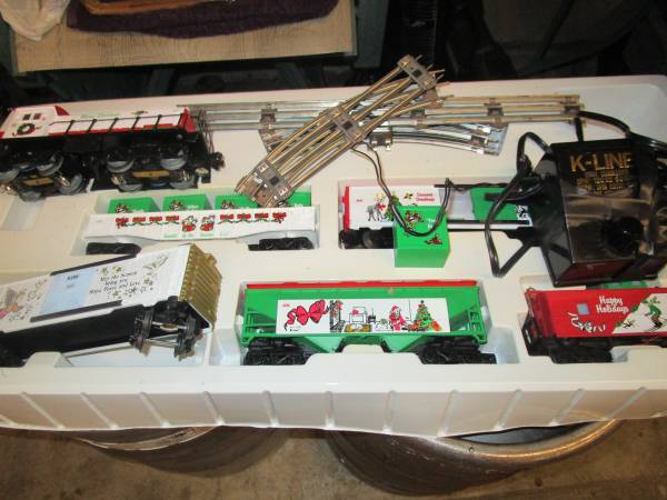K LINE CHRISTMAS TRAIN SET -WORKS AS SHOULD --SEE PICS--CLEANING OUT GARAGE -BROTHER DIED -----------------------------------PLEASE PLEASE PHONE # PLEASE FOR REPLY -----YES STILL FOR SALE