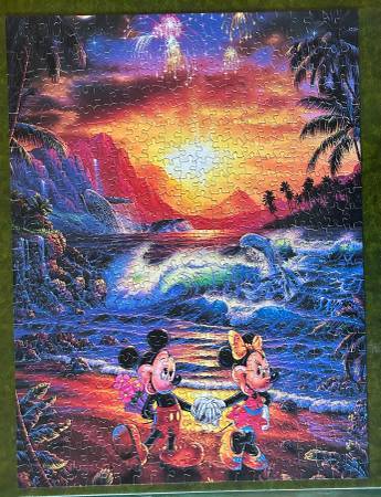 Christian Riese Lassen 550 Piece Disney Themed Puzzle Seaside Romance 550 Piece Jigsaw Puzzle featuring Mickey and Minnie Mouse. "Seaside Romance" by artist Christian Riese Lassen. Finished size 24"...