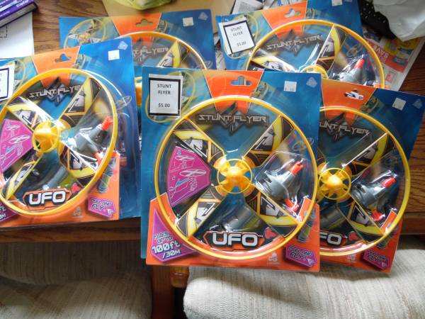 Stunt Flyer Flying UFO --New in Package-Half Price-- These stunt flyers fly up to 100 feet. $5 each - 5 available Warren Residence near 10 Mile and Mound