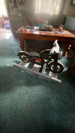 Beautifully detailed! Cool and rides well! 34” long 23” tall. Very sturdy and very well built. It has been on many “rides” in front of the tv! Now the kids are all too big for it. The phone number is my land line. Please leave a message and your number and I will call you back. Thank You. Or send a email through Craigslist. Utica/Shelby Twp area