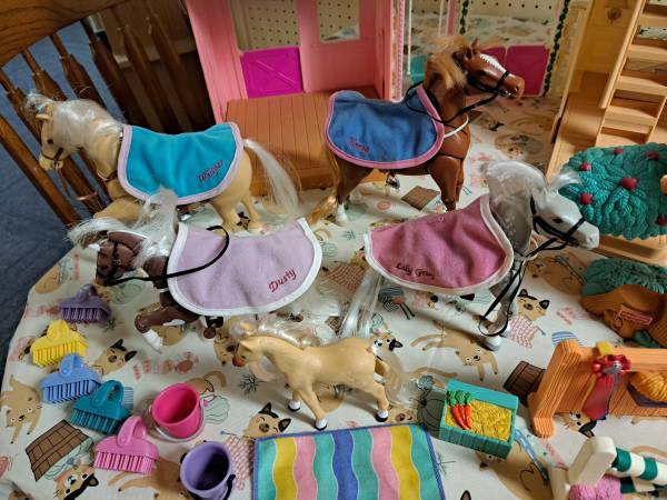 Fisher Price Loving Family Dollhouse & Horse Stable. Vintage. Lots of extra accessories. Excellent condition. Non-smoking house. Kept very clean. Batteries were removed before put away to...