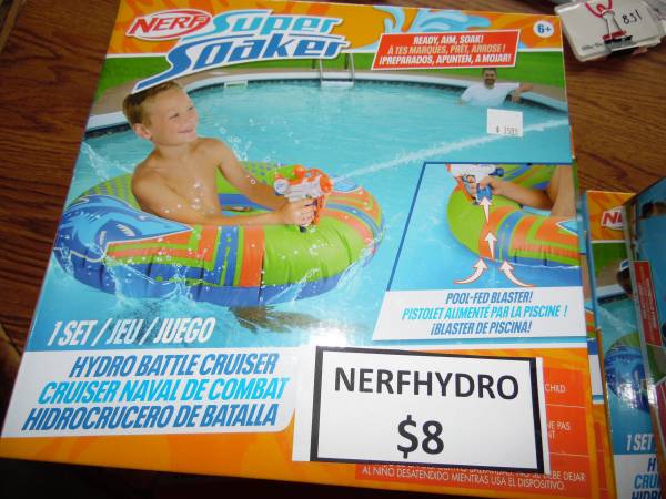 Nerf Squirt Gun Battle Cruiser --New in Box-Half Price- These are super soakers floats that have an unlimited tank. They spray water from the pool to soak your target! They are for ages 6+. $8 each...