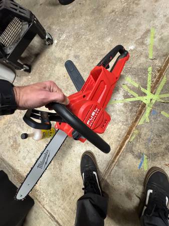 Brand new, never used 16" Milwaukee chainsaw-tool only. Originally $329 for tool only. I ordered but never used and threw away the box. My loss-your gain. I purchased an extra chain and bar/chain lube as shown in picture. Will throw in extras. Firm pricing. over $375 value/ 35%+off vs. store.