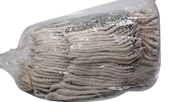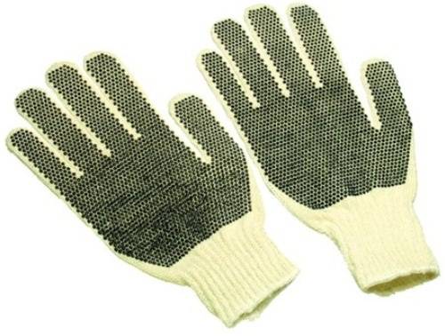 70% Cotton and 30% Polyester White String Knit Gloves, Knit Wrist, PVC dots on both sides Used for General Labor, Material Handling, Shipping/Receiving, Agriculture Size Mens Large 4 Dozen pairs of gloves