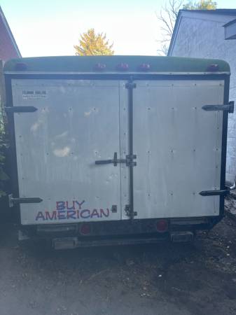 Selling a 16ft trailer with ramps. Trailer was used for storage for the last few years, and will need some work to be roadworthy. Tires are dry rotting, the lights are not working, the hitch has difficulty releasing and has a wire that is torn, and the electric jack is missing a cover. The trailer was just used recently, so can confirm that the brakes are not locked up.