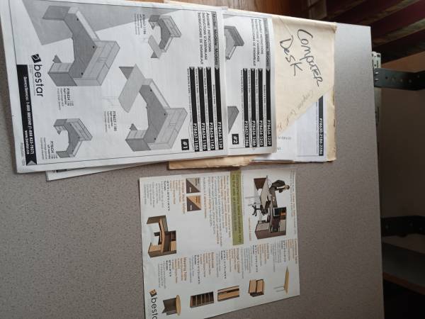Excellent shape. Taken apart in three sections for easy reassemble. Great for homework station, home office etc. Fits nicely in small to medium room.