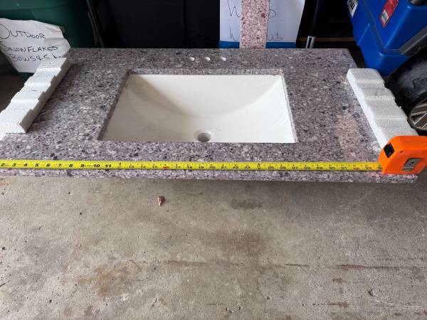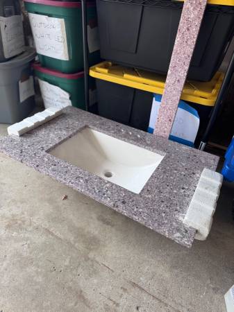PENDING PICK UP Single piece counter and sink. Backsplash also included. See images for better idea of condition and construction. I don't know much about it as it was left behind by the previous...