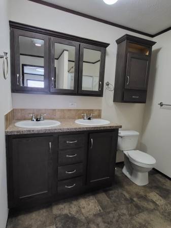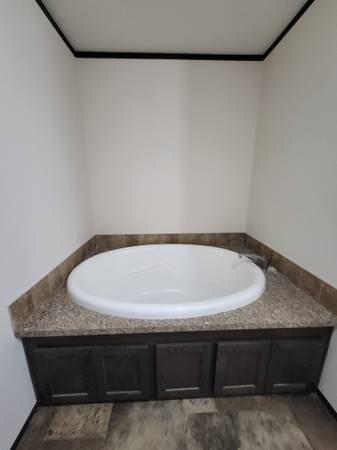 This 2017, 1456 SF modern home has new carpet, spacious kitchen with popular bar ideal for serving and barstool seating. Primary bedroom is an ensuite with lovely garden tub and walk-in shower. Bedrooms 2 and 3 are near 2nd full bathroom. All appliances shown are included.