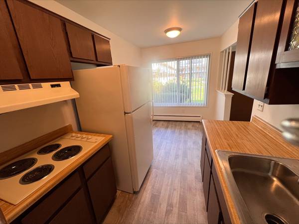 The cost is $1050.00 for a 12-month lease, heat and water included and the apt has a stove, fridge and dishwasher. The apt also has wood floors. The apt is located on the first floor. We also laundry rooms located in the basement.