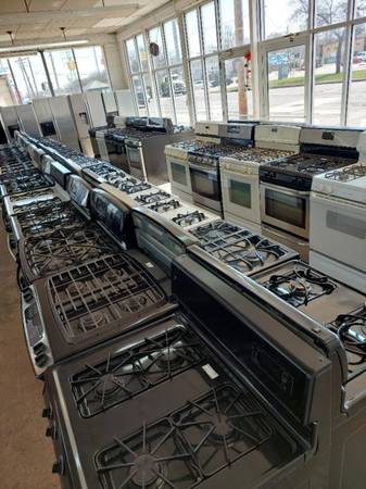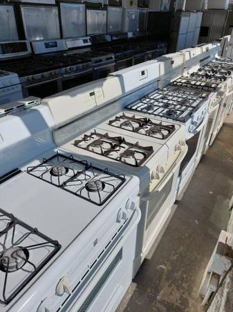 Washers, Dryers, Laundry Centers, Electric Ranges, Gas Stoves, Upright freezers, and Refrigerators.