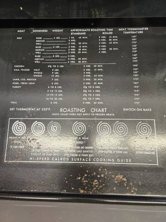 Vintage general electric stove 1950s model number d11-k1 serial number 859-2483. They're selling between $900 and $1,500. This stove is in clean butt original condition the price is $600 firm. The working condition is unknown . It has the high speed Thrift cooker option.