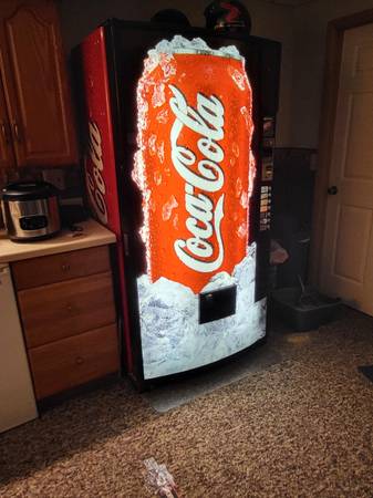 Used (7) Vend 12 Oz. can pop machine....works fine....not in use for last (20) years....adjustable coin sell value to dollar bills Will require (2) person help removing from basement to garage area...