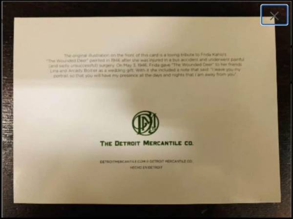 Inner message "Happy Holidays fresh off the line from Detroit" (+lots of room for personalization.)