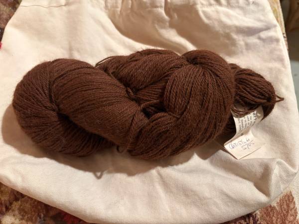 Direct from Peru, natural color, beautiful chocolate brown, soft, med-thin weight. 8 ounces. Regular $30. One skein available. New Hudson.