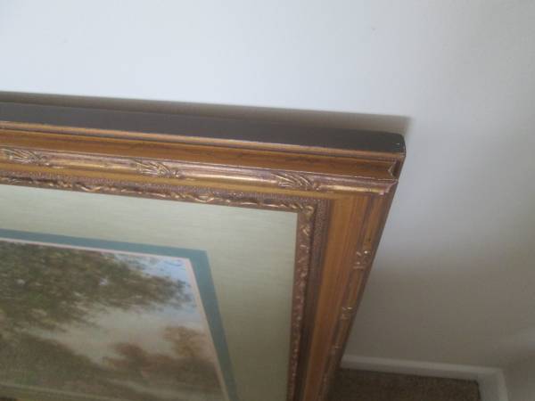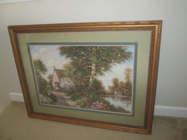 Large luxury framed wall art for your estate. Measured 32" x 42". Steel wire strap for mounting. Decorated wood frame. Beautiful. Help improve home value. Excellent condition.