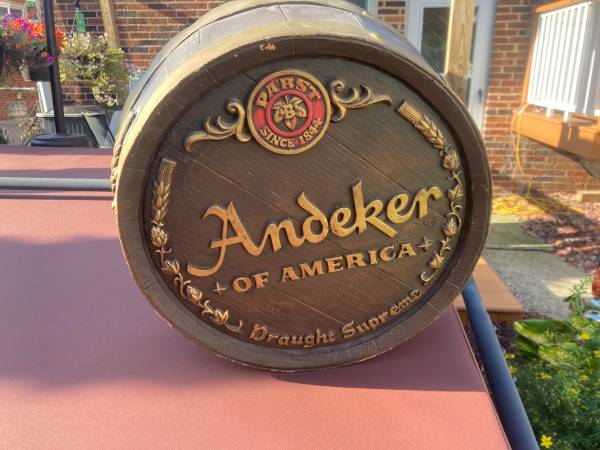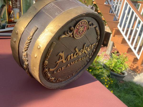 Vintage Pabst Andeker Beer Barrel Bar Sign - 16" X 6". Unit is in great shape, would be a champ in someone's basement bar.