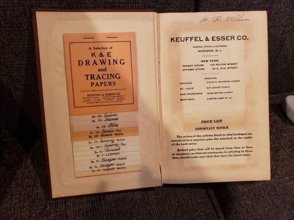 KEUFFEL & ESSER CO. ANTIQUE CATALOG + PRICE LIST. Antique. 37th edition. 1927. Surveying and drawing materials. Sample papers enclosed. $20