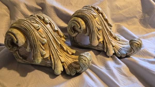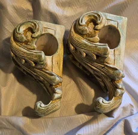 Antique, ornate plaster fabric or rod holders. Wall mountable. Srong and sturdy.