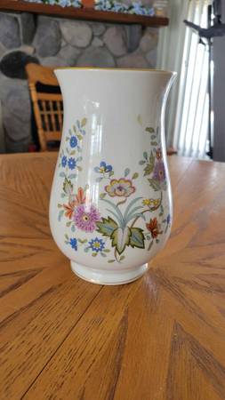 Vintage Hutschenreuther white German Floral flower vase with gold edging. 8"H x 4.25"W at top x 5"W at middle