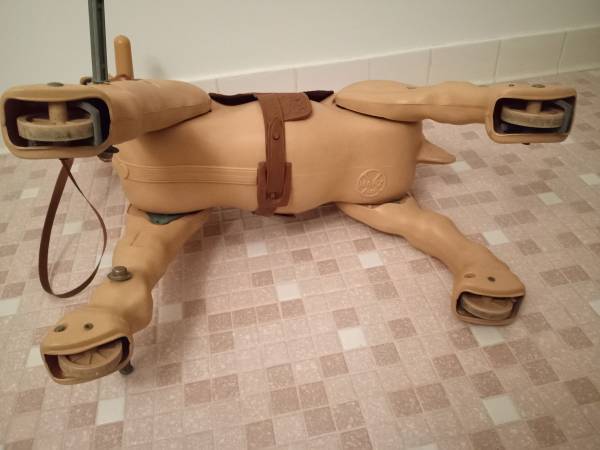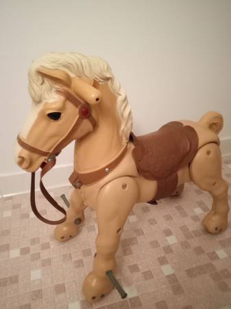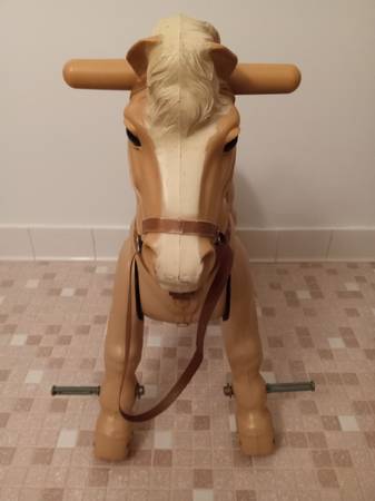 Ride on galloping horse from 1967 . Legs go up and down and wheels on the feet move it across the floor. Measures 24 inch tall at highest point 23.5 inch long from head to tail. 14 inches tall from...