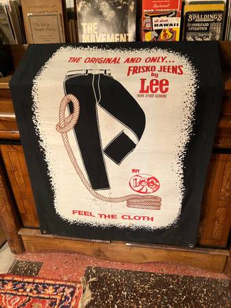 Available for purchase, this original store advertising banner for Frisko Jeens by Lee. Ready for a new home