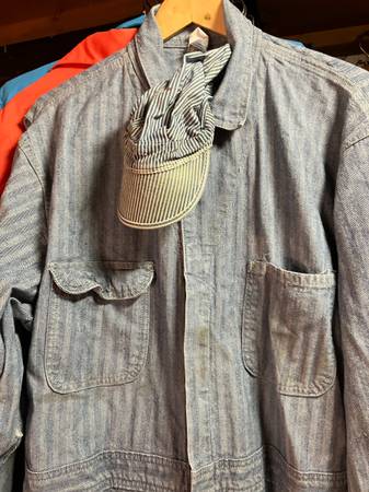 Available for purchase, a pair of Big Mac Striped Coveralls and Cap. Ready for a new home