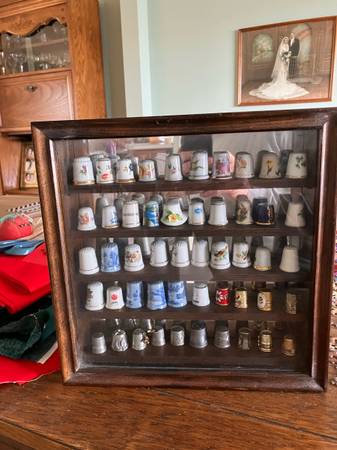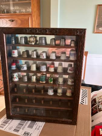 Two wood thimble display cases with various thimbles. $100 each or take both for $150