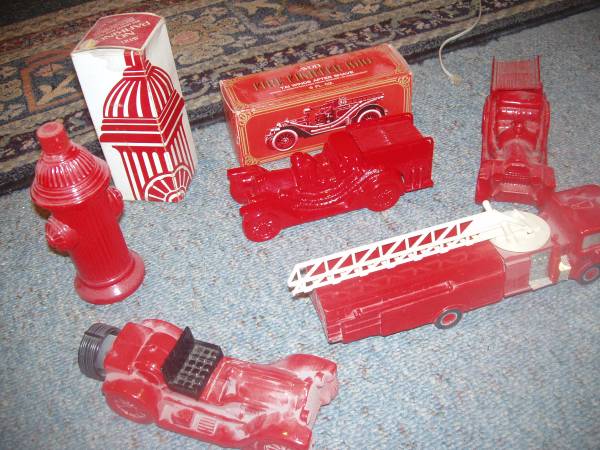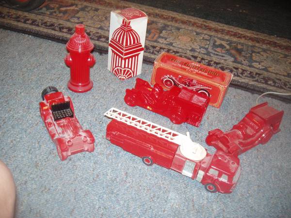 ----24 EIGHT -31 FIVE - 381 FIVE-----NEW FIRE FIGHTER TRUCK ENGINE LADDER HYDRANT AVON GLASS BOTTLE COLONGE & TALC -$1 w/o BOX---$2 with BOX