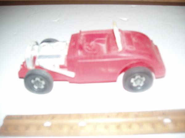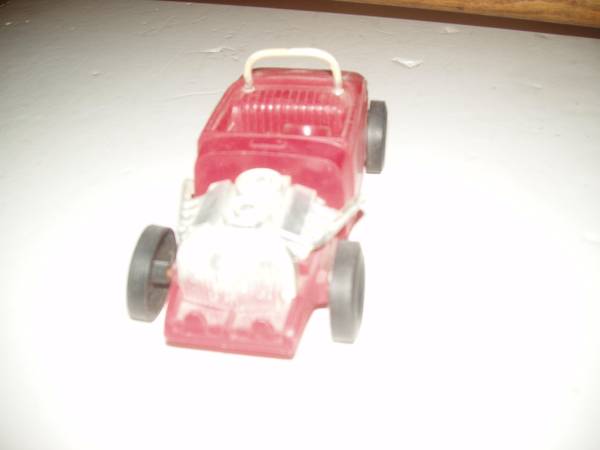 ----24 EIGHT -31 FIVE - 381 FIVE-===TOY 7" HI BOY PLASTIC V-8 HOT ROD CHROMED ENGINE - car never had a wind shield---by GAY TOYS INC- WOW if this were the REAL THING---DUAL 4 BARREL carbs-OPEN HEADER V-8--HI BOY---ROLL BAR--my DREAM CAR---REALLY OLD---nobody would name their company GAY TOYS today & expect to sell to the general consumer---its a different world today than back in the 50s-60s