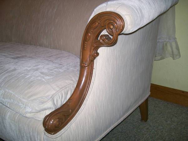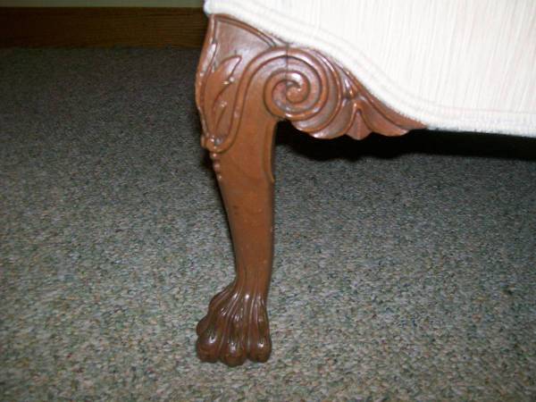 Beautiful antique clawfoot sofa with beautiful wood carvings. Dimensions are 80 1/2" long, 34" tall, and 34" deep. Very comfortable to sit in and in good condition for $395.