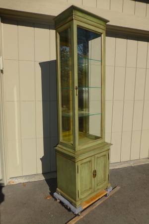 Fine furniture, solid wood cabinet, with adjustable glass shelves, Brass hardware. Excellent condition cash only please.