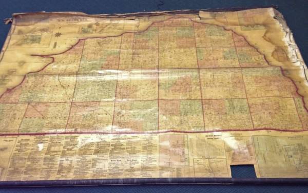 Vintage 1875 Huron County Canvas Map in Good Condition for $400 plus any delivery charge. The HUGE Canvas Map measures 63" wide x 43" high.