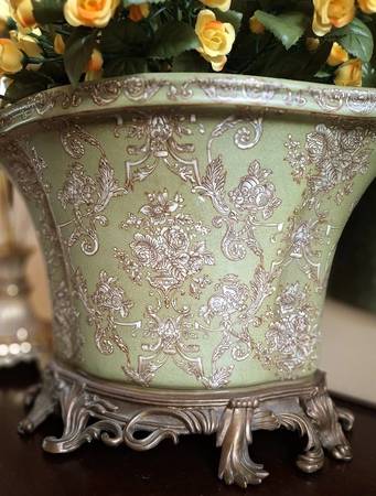 I have another item "Ormolu Urn Vase Jardinière Floral Design Brass Mounted Inlay Swans Handles" Item ID: 267326254685 with the same pattern (please, see last photo) Each items sales separately.