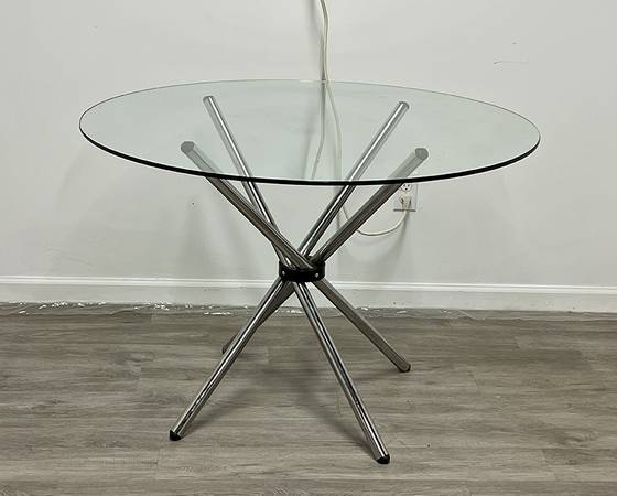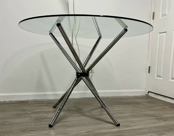 42” diameter Mid Century Modern Dinette Table. Glass and chrome base. Measurements in photos. $150