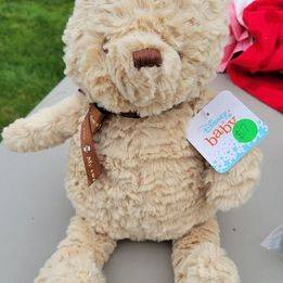 Lullaby Lane Bear Security Blanket - $4 Disney Baby Bear - $7 Adorable Heart (Valentine) Outfit (0-3 Mos) $8 Hello Kitty Loofah $3 Bottle Brush $1 2 Plates $1 9 Pacifiers - $10 4 Pacifiers - $5...