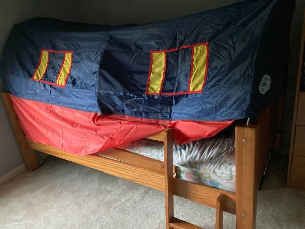 This is an indoor over twin bed tent. Easy to assemble, this tent will provide camping feeling for your child in the convenience of your own home. Comes from a non-smoking home and it is like new.