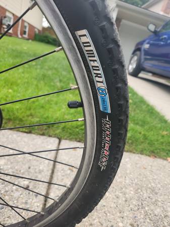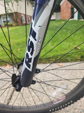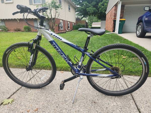 Trek 3700 26" mountain bike with aluminum frame. SR Suntour RST 191 CS suspension fork. New Bontrager seat, Tektro V-brakes, Shimano EZ Fire Plus trogger shifter. 13" frame. Also has kickstand and...