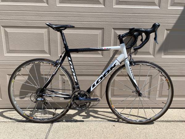 Look 555 Carbon fiber frame road bike, frame size 55cm (5'-9" - 5'-11" roughly). Fully stock bike with the exception of upgraded wheel set. Very light, reasonably stiff, and very comfortable road bike perfect for long rides on varying pavement. I used this for many Century rides and general training. Selling only because I've finally treated myself to a brand new, high-end road bike with e-shifting and disc brakes, etc for Father's Day. This is a great bike, super comfortable for long rides, and plenty stiff to keep up on the sprints with your overzealous riding partners.