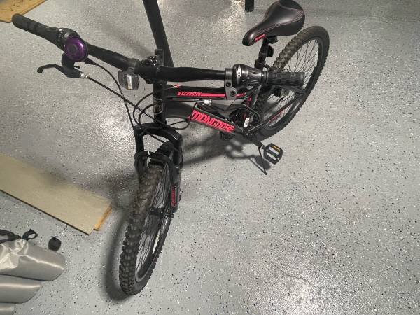 21 speed, girls style mountain bike Disc style front brakes Like new condition, only used a couple of times Paid $225 when new Extra item - ring bell