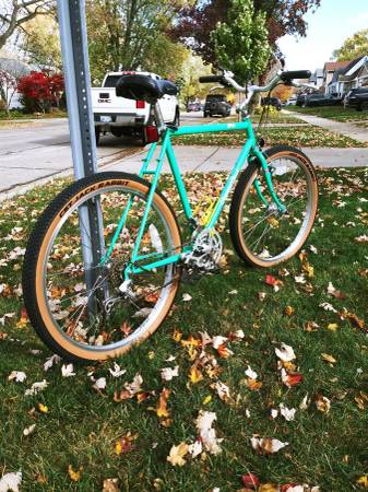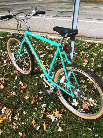 large Tange MTB steel frame,new CST tires-tubes,org.comfort riser bars,high flange super smooth sealed bearing hubs,tru wheels,biopace,zero rust-excellent condition with patina.
