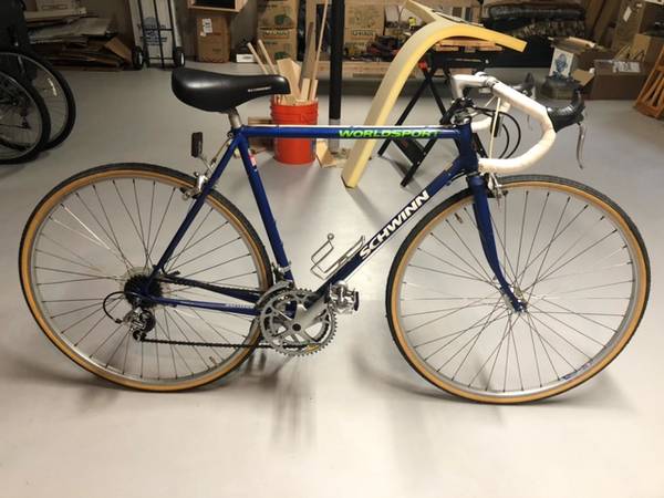I'm selling my vintage 12 speed Schwinn road bike. New tires and just tuned. Not ideal time to sell bicycle season but i need to get sell this fast. Need basement space. Shimano SIS derailleur, Sakae handle bar, kick stand, water bottle holder, hidden brake lines, front & rear quick releases with safety locks, original Schwinn seat with quick release adjustments. No rips.