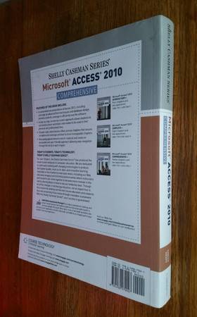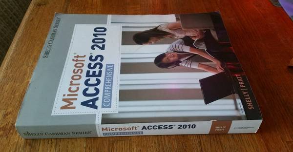 Microsoft Access 2010: Comprehensive Shelly Pratt 1st Edition textbook Trade Paperback in New condition except for the notation above about something setting on it in storage and leaving a mark on the front and first couple pages. The rest of the book is unaffected and is Brand New! No marks, highlighting or underlining. Some minimal wear from storage.