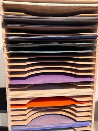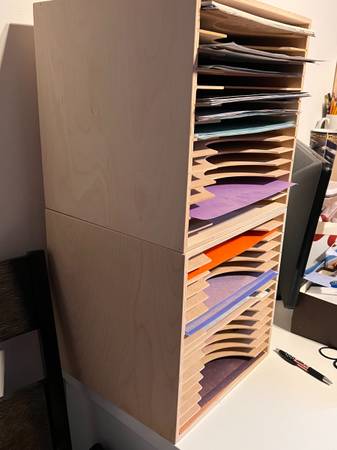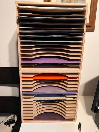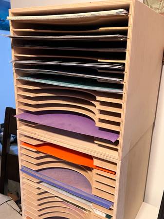 Wooden scrap book paper organizing units. Both of these are 13" tall by 13" wide by 12 1/2" deep (from wall). Great for keeping all of your scrapbooking pages, stickers, construction paper, art papers, etc.