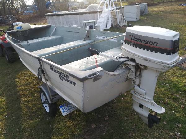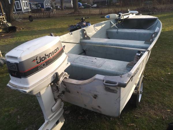 1984 deep and wide boat, 2 like new clamp on seats. 1989 Johnson 20hp manual start tiller and 54 lb thrust electric motor and battery. Balko trailer, spare tire, anchor, life jackets. Call for an appointment to see and make an offer. Posting deleted when sold. show contact info