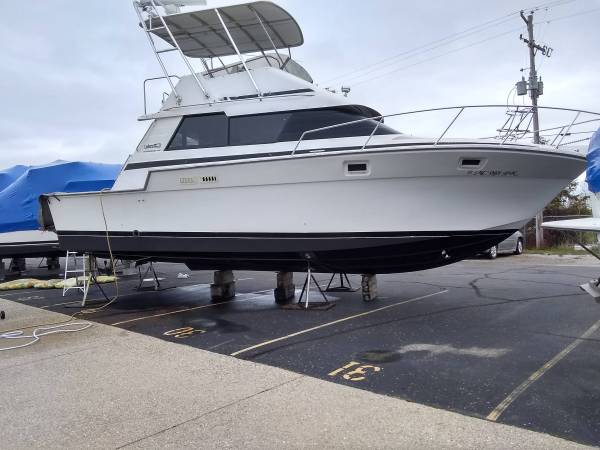 1989 Luhrs 342, twin 350's with 760 hours synthetic oils for the last 20 years, bow and stern thrusters, dripless shaft seals, props and shafts service Henry H Smith, 48 mile lowrance color radar/chartplotter, garmin 220 chartplotter, furuno sonar, simrad auto pilot vhf, electric compass, new ritchie compass, new flybridge canvas, hardtop and radar arch by alantic towers, new headliners and new cushions, reverse heat and air, new led interior red/white lighting, 300 gal fuel , engine sync, bennett tabs with auto control, vessel was used only for deep water dives on lake huron, no over nights, non smoker and no pets, new boat is here so time for this one to go, boat was just laid up at Jerrys Marine in East Tawas