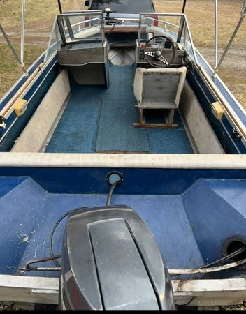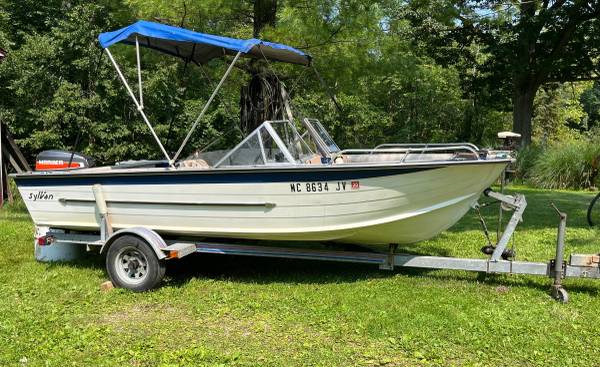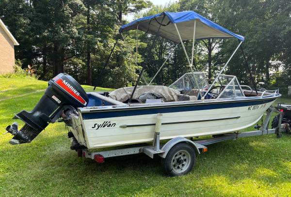16ft Sylvan Aluminum Boat, 60HP Mariner outboard motor, trailer. Motor runs good. Bimini top. Stored indoor. Ready for the water and Fishing.