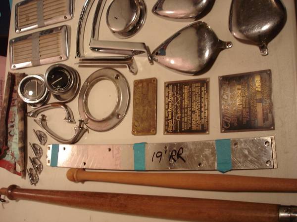 Trailer is included and can haul anywhere but needs to be fitted to boat. Engine is complete and turns over and head is off for inspection... Also have a 327 chev V8 if you prefer. Very worthwhile restoring, highly desirable and valuable, restored around $60,000.00 I have a rare top collectable 19' Chris Craft 1940 Chris Craft Barrel Back, maybe the best year with blue gauges and orange deck stripes. Restoration started with all new mahogany bottom frames and 3/16" plywood sides ready for planks to be reinstalled which are usable. state of the art epoxy construction... have all hardware, gauges restored, prewar M engine, needs decks and bottom... on tandem axel trailer. 21,000,00. I have a 19' Chris Craft 1939 Barrel back the bottom, sides, and frames. Have hardware less windshield. M Engine. trailer... I have hundreds of Speedboat parts, what are you interested in... thanks... photos soon...