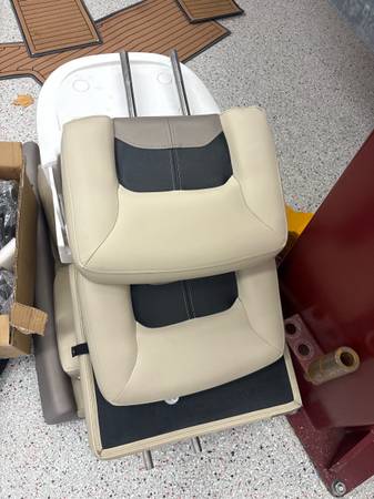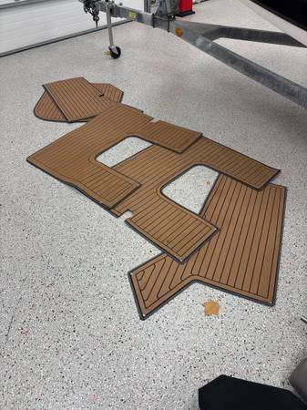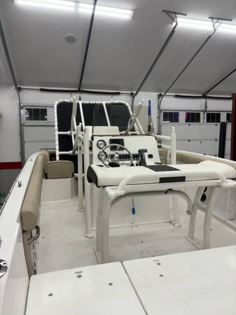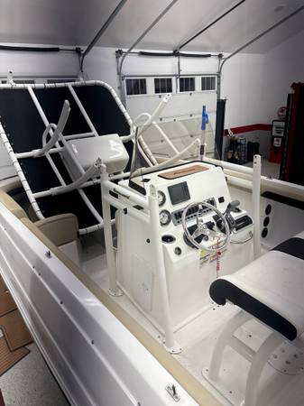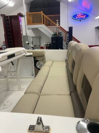has snap in sea-dek flooring, built in rod holders, also has the t-top and leaning post t-top pivots and lays down easy, its in my garage now thats why the pictures show it laying forward, top and leaning post are made by fish master which was a 7k add on, the T-top is foldable for easy storage , seats 10, please call me if intrested. show contact info