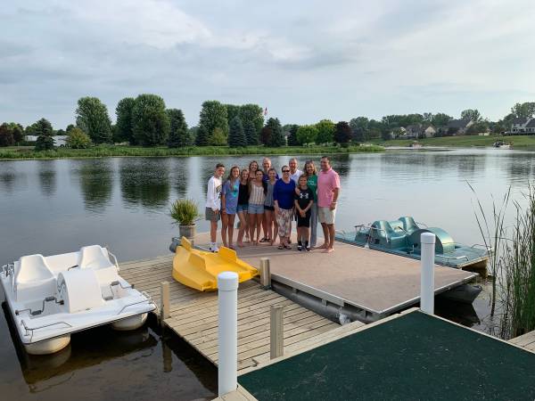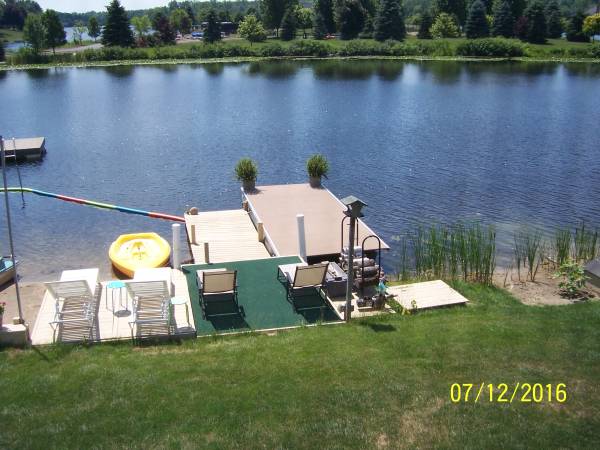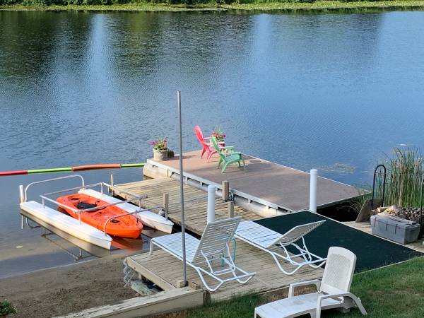 You can have your own floating beach without sand or weeds for sunbathing. (Our grandchildren line their beach towels up in the summer and use the floating docks like this one as a secondary sunning beach/deck.