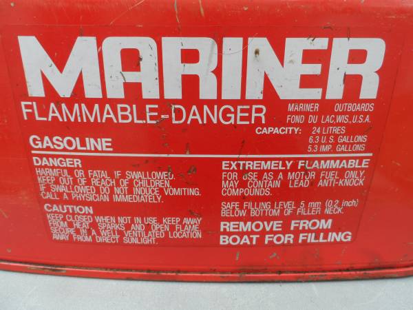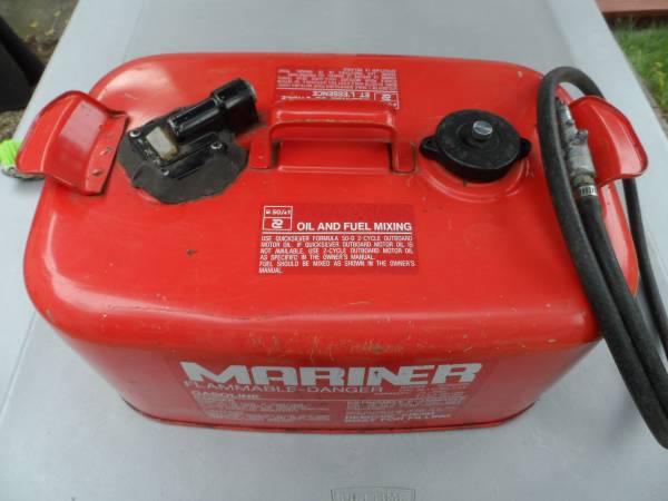 MARINER 6.3 GALLON OUTBOARD MOTOR FUEL TANK STEEL, NO RUST THE NON-WORKING FUEL GAUGE SEAL HAS BEEN EPOXIED